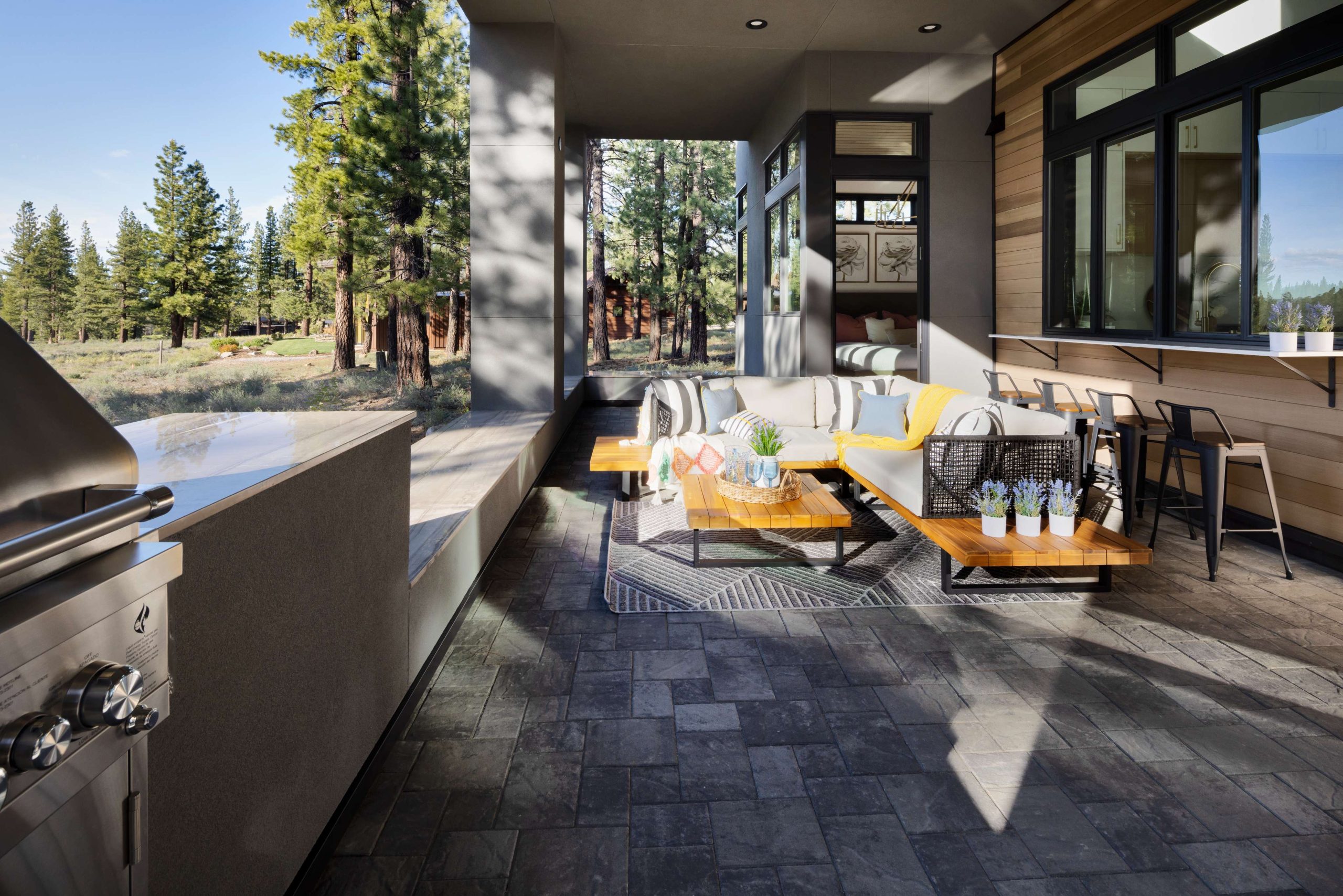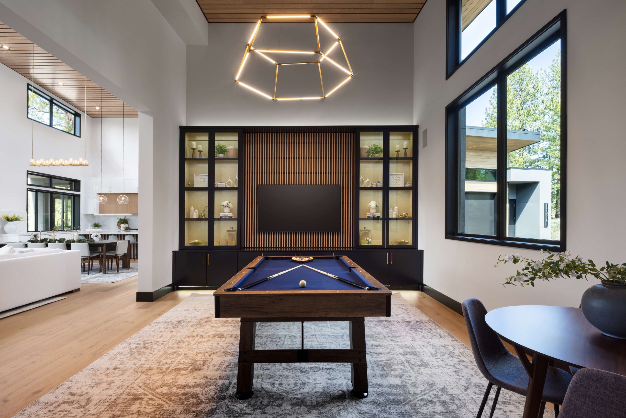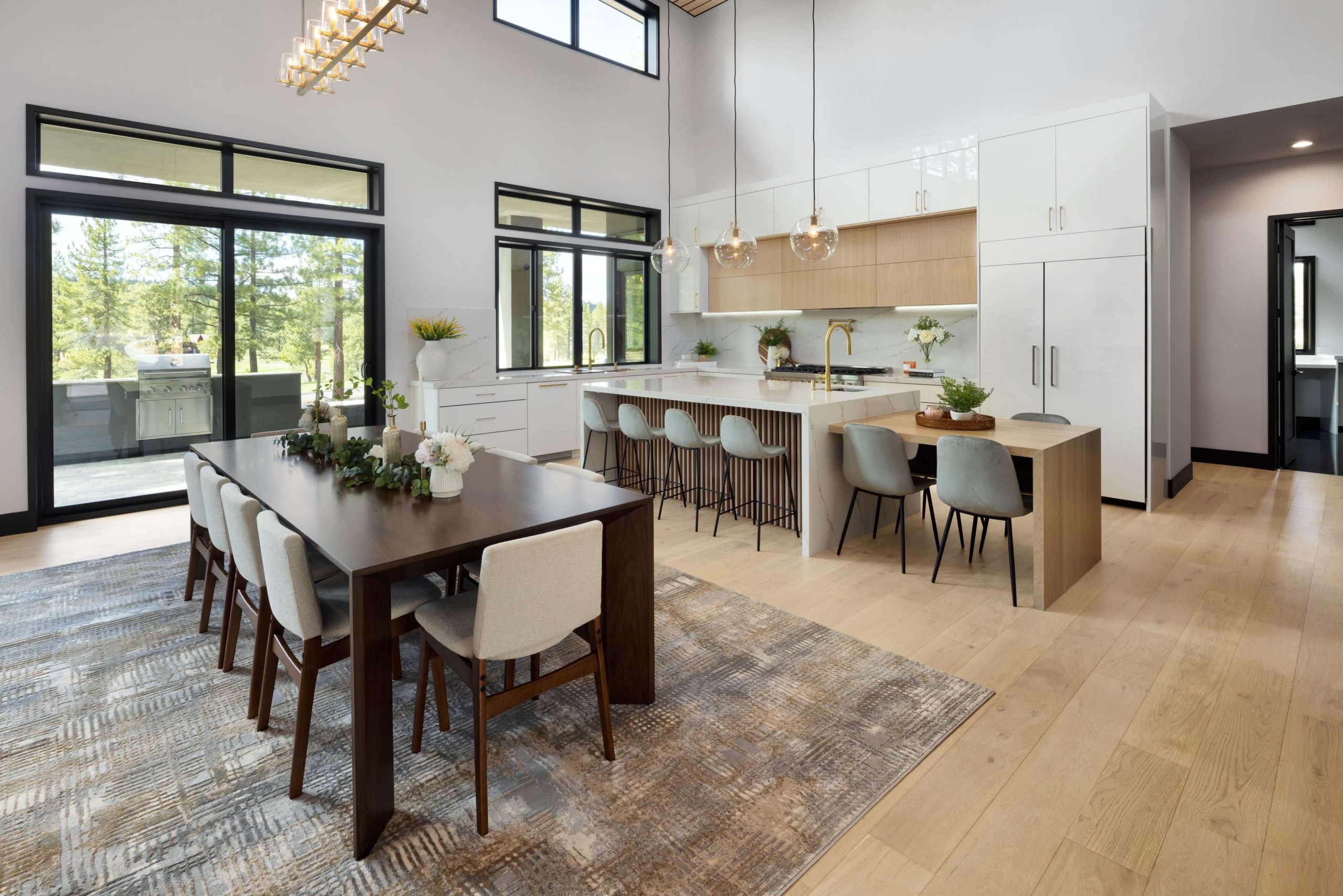 The great room unfolds seamlessly into more than 500 square feet of outdoor living space — an entertainer’s dream complete with a built-in BBQ, firepit, and pass-through bar for al fresco gatherings under the Tahoe sky. Four spacious bedrooms, a dedicated office, and a versatile recreation lounge offer both privacy and connection.