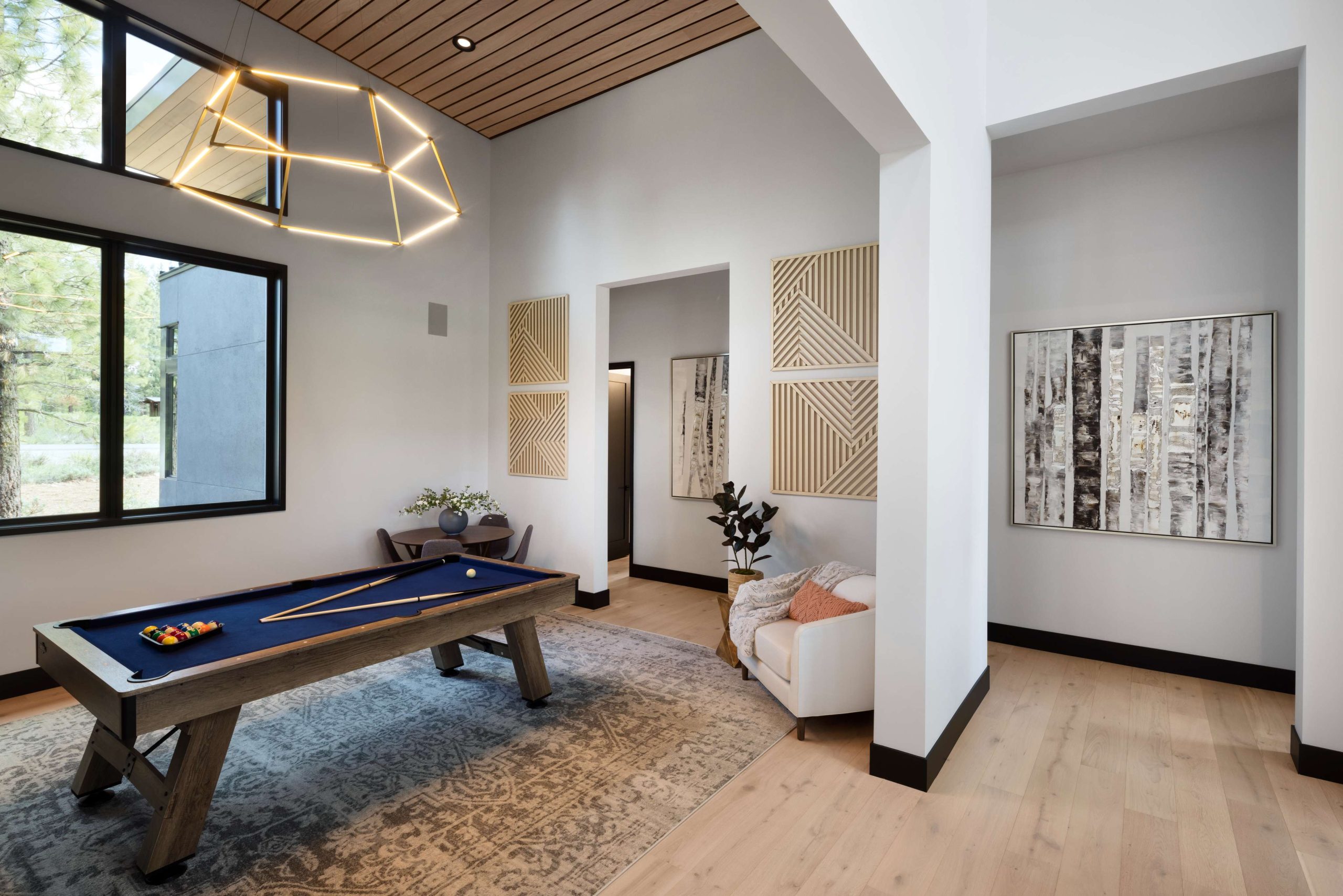 Radiant comfort throughout ensures an inviting atmosphere in every season, while every architectural detail has been thoughtfully considered — from the striking roofline to sculptural lighting and the interplay of wood, stone, and glass. Sleek yet inviting, this modern retreat embodies the prestige and serenity of contemporary Tahoe living — crafted for those who appreciate design, luxury, and the art of simplicity.
