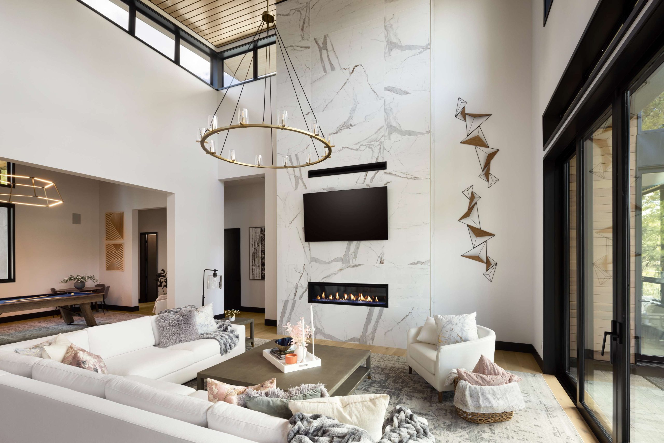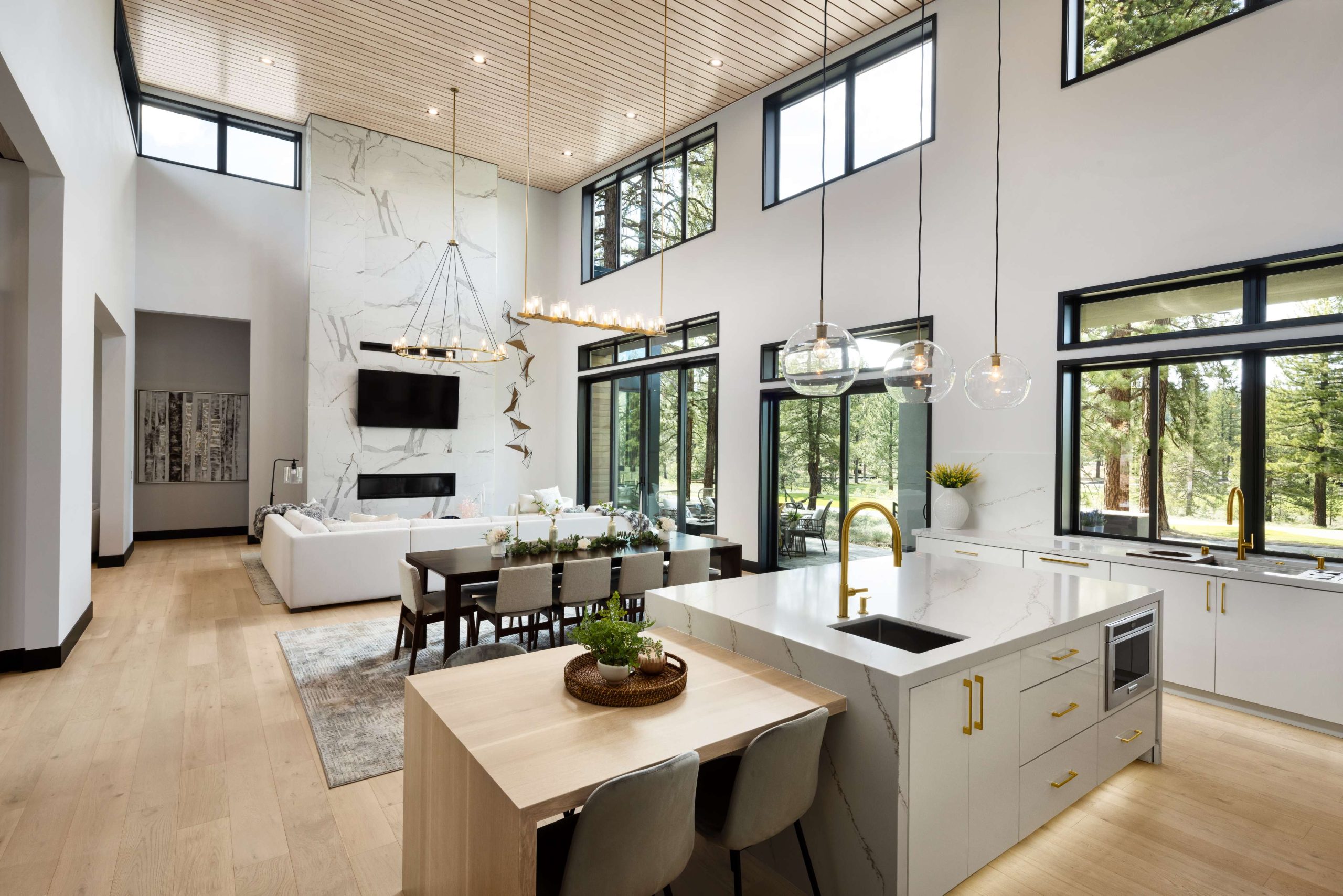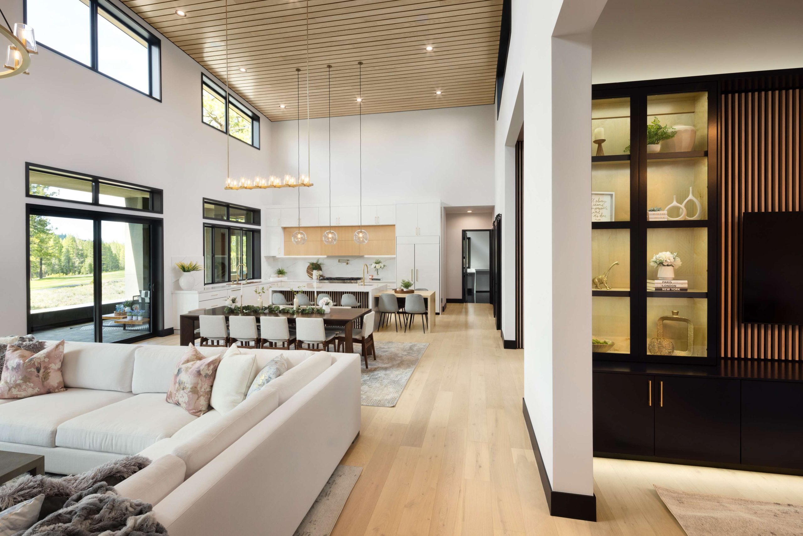A masterful expression of modern mountain architecture, this single-level residence combines bold design with effortless livability. Framed by serene forest and fairway views, it captures the perfect balance of elegance, comfort, and natural beauty. Expansive glass walls invite light into an open-concept interior defined by clean lines, warm textures, and refined craftsmanship.