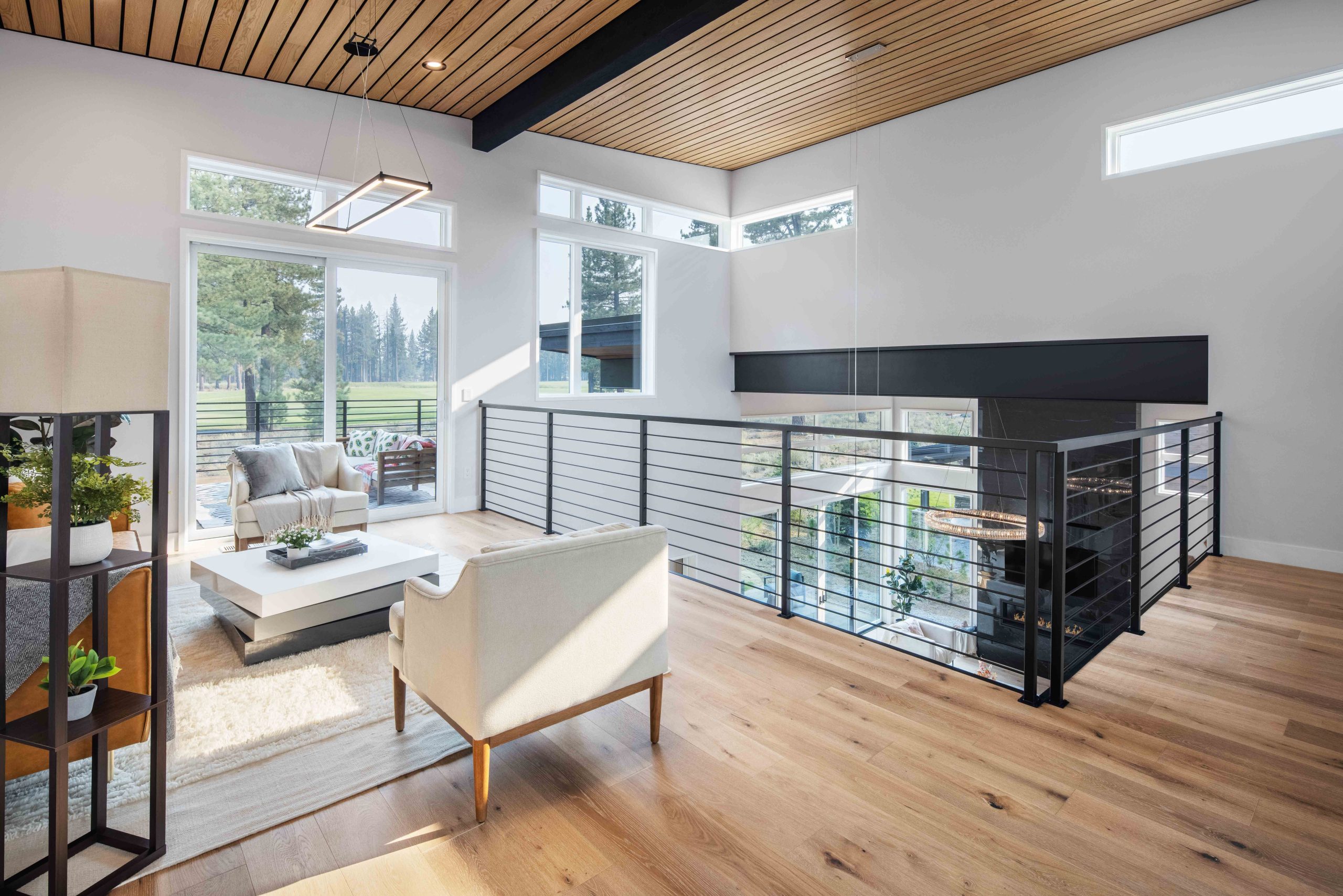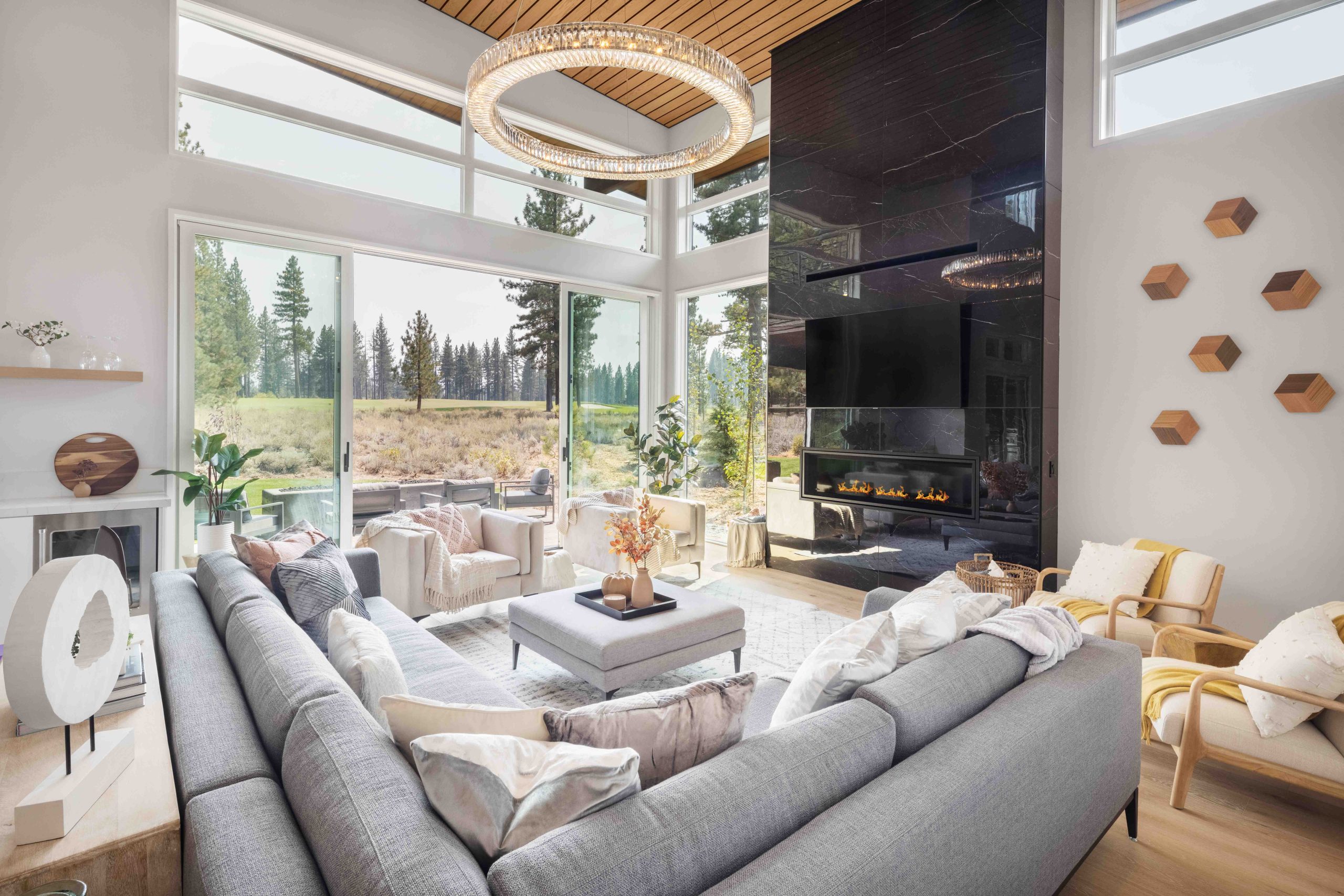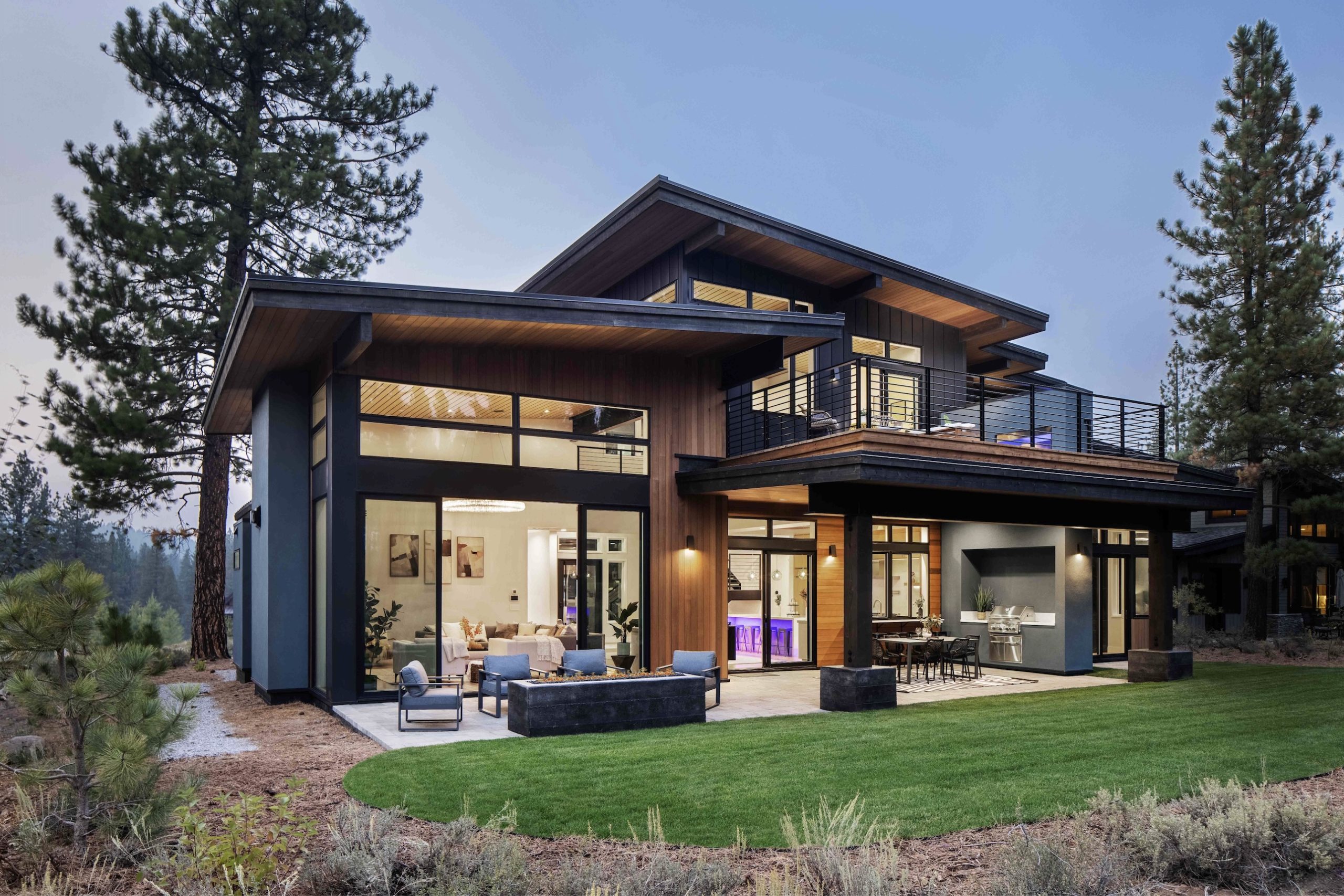 An exquisite fusion of contemporary architecture and mountain serenity, this custom residence embodies timeless design, refined craftsmanship, and effortless sophistication. Every element from the bold geometry of its structure to the warmth of its natural finishes reflects an elevated vision of modern alpine living. Walls of glass frame sweeping views of forest and fairway, filling the interiors with light and connecting seamlessly to expansive outdoor terraces.