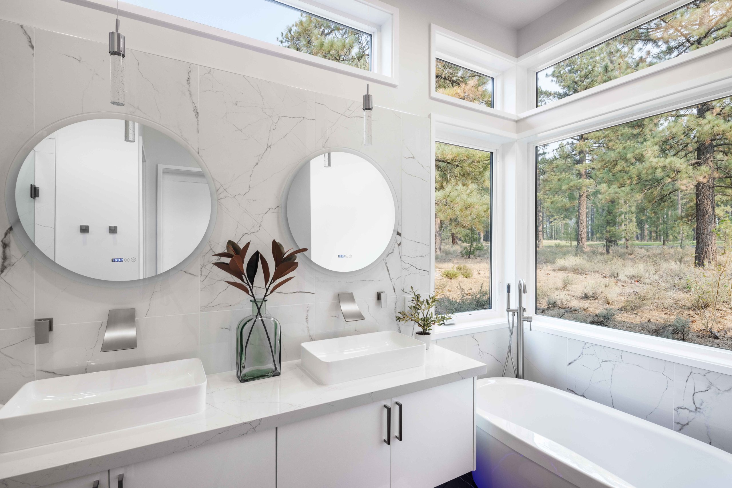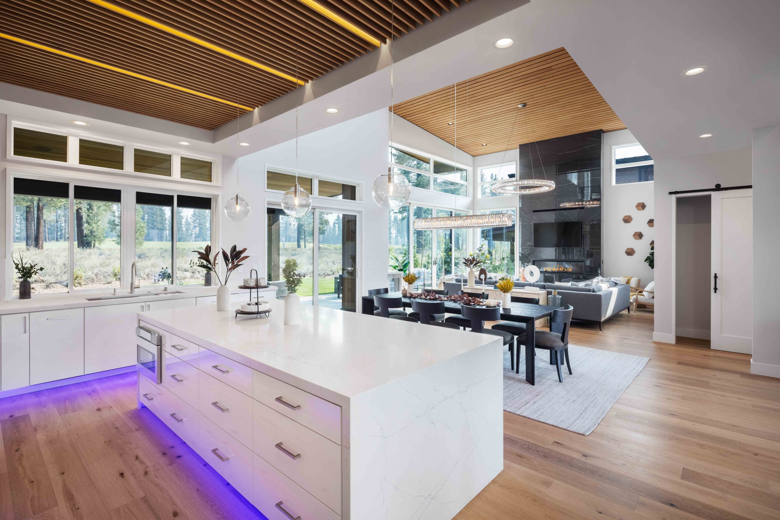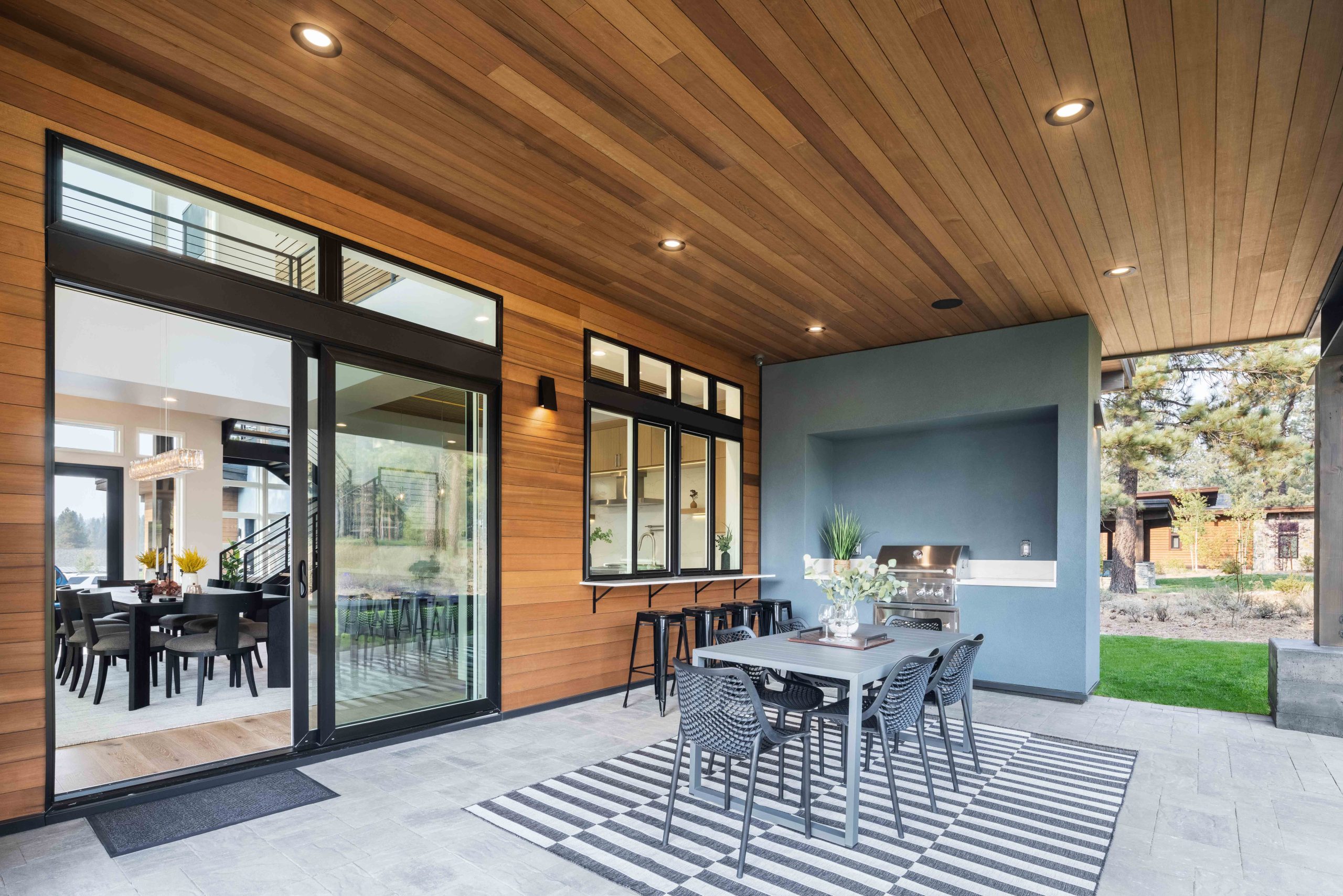 An exquisite fusion of contemporary architecture and mountain serenity, this custom residence embodies timeless design, refined craftsmanship, and effortless sophistication. Every element from the bold geometry of its structure to the warmth of its natural finishes reflects an elevated vision of modern alpine living. Walls of glass frame sweeping views of forest and fairway, filling the interiors with light and connecting seamlessly to expansive outdoor terraces.